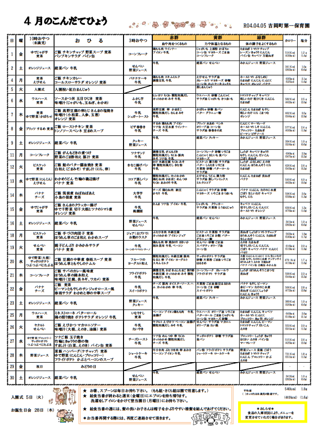 4月 献立表