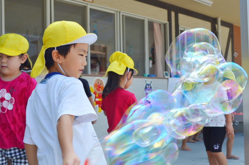みんなやり方を色々工夫しながら沢山のシャボン玉を作っていました。