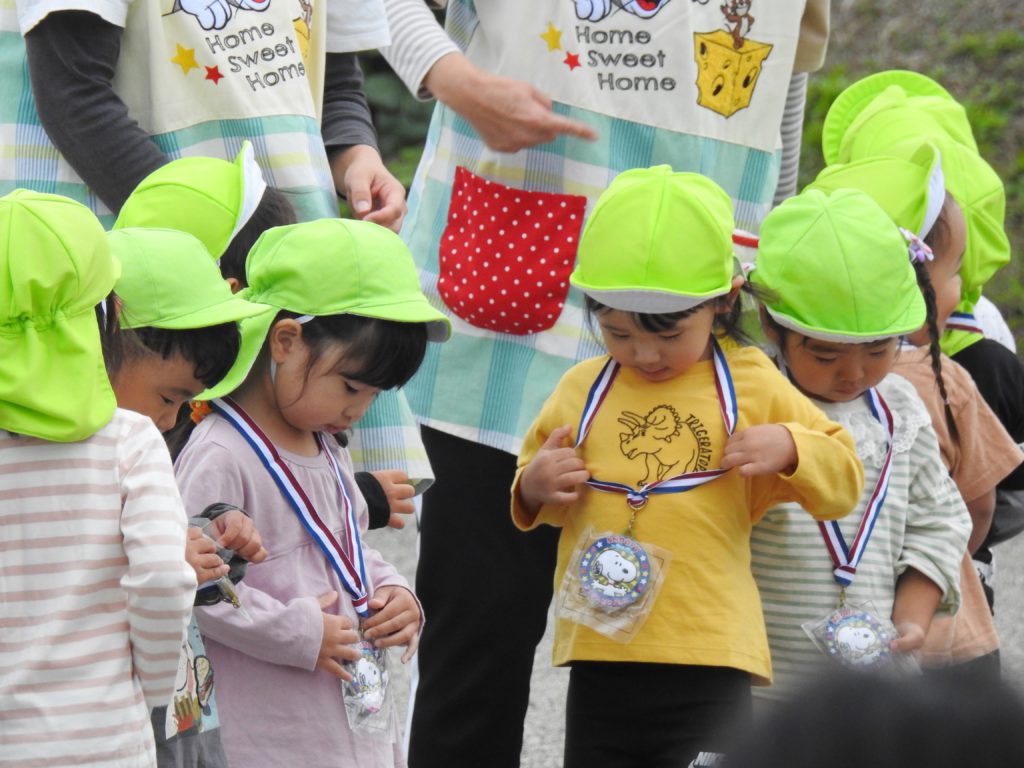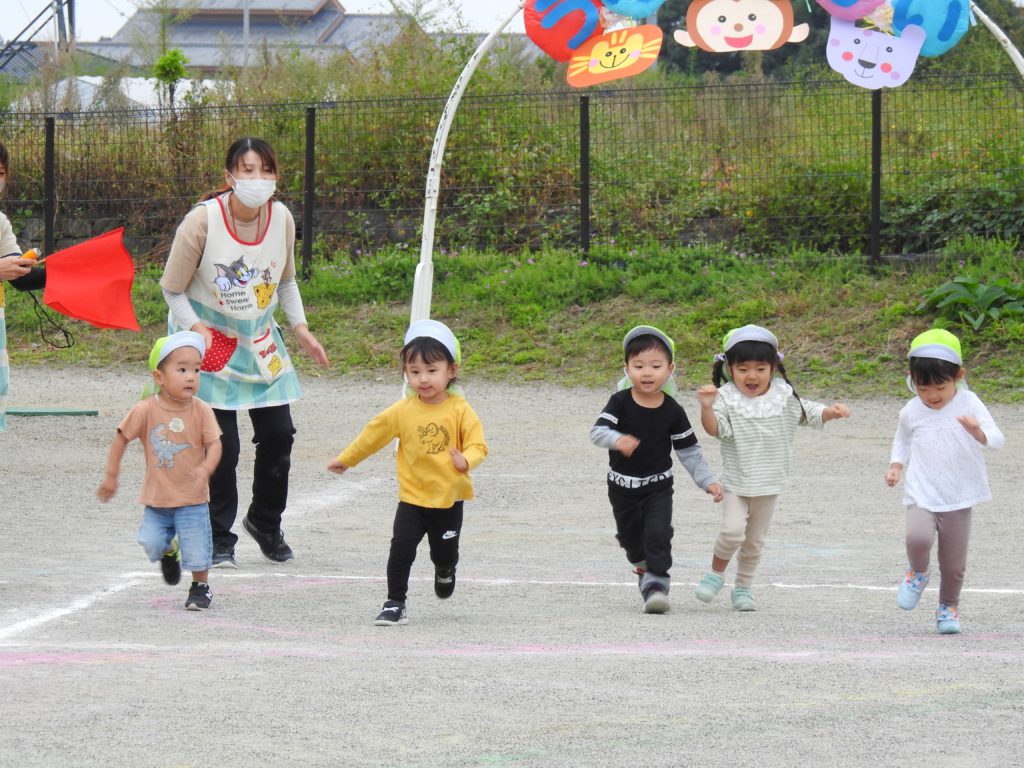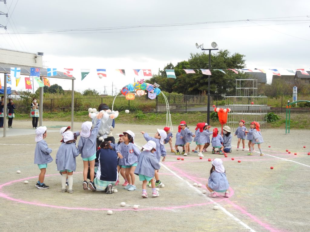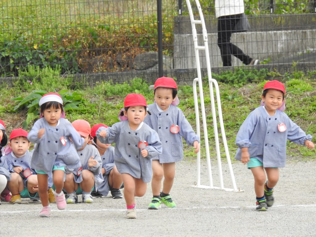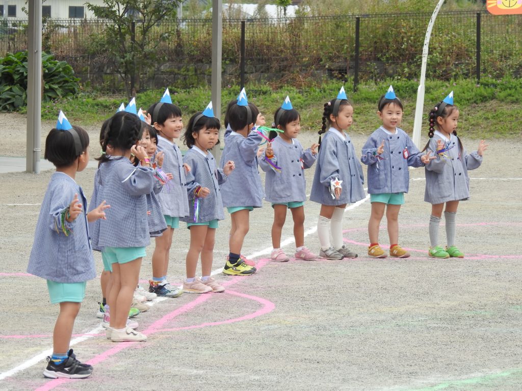 今日までたくさん練習してきたお遊戯やかけっこ、玉入れなどを