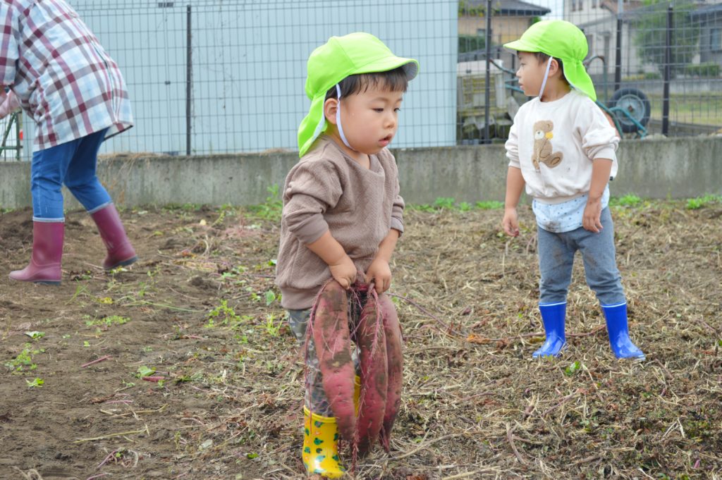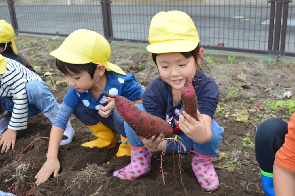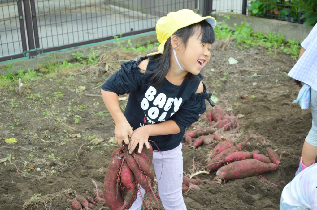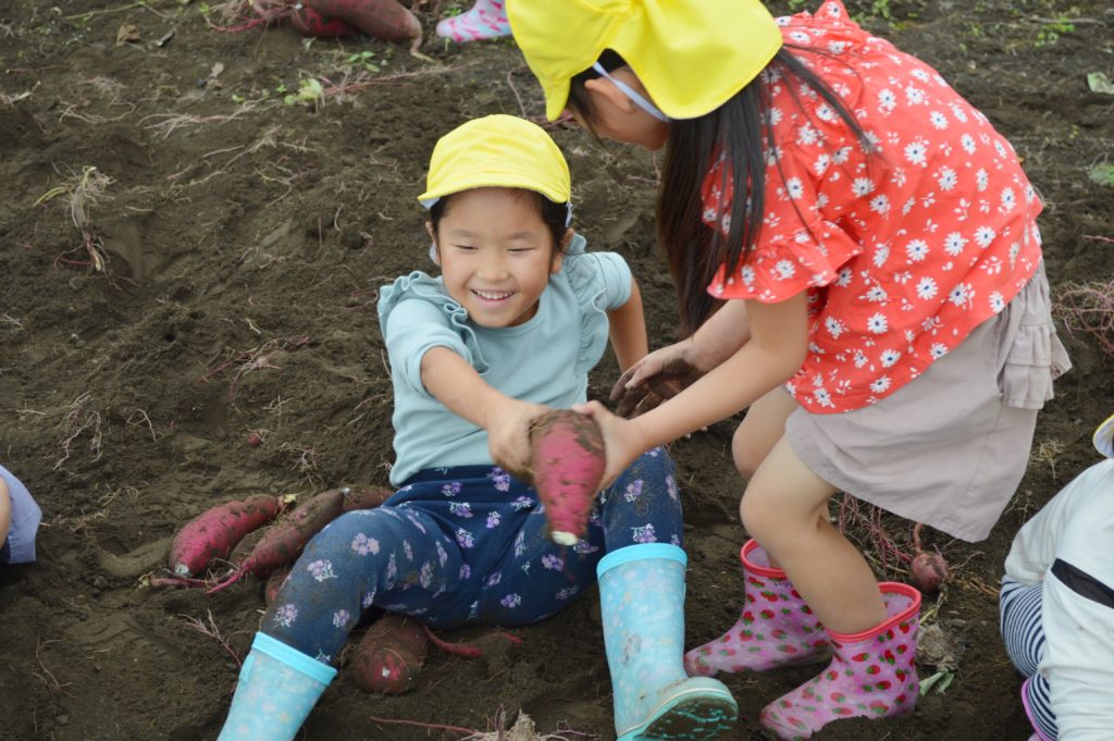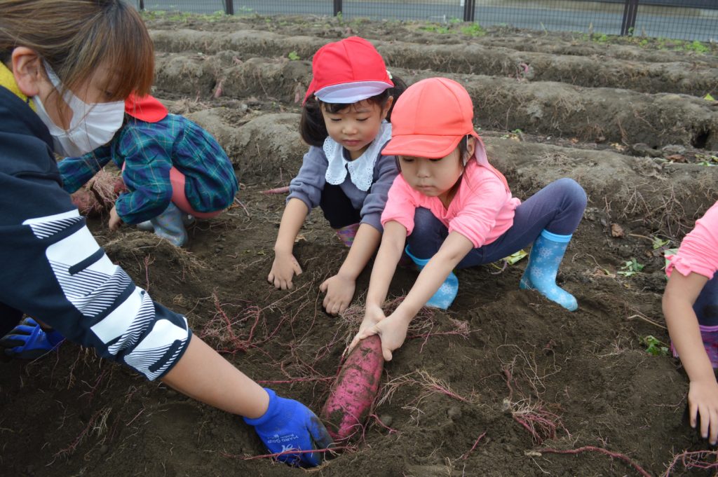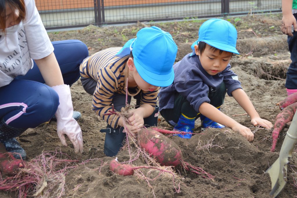 今日は以前に子供たちが植えたサツマイモの収穫を行いました。