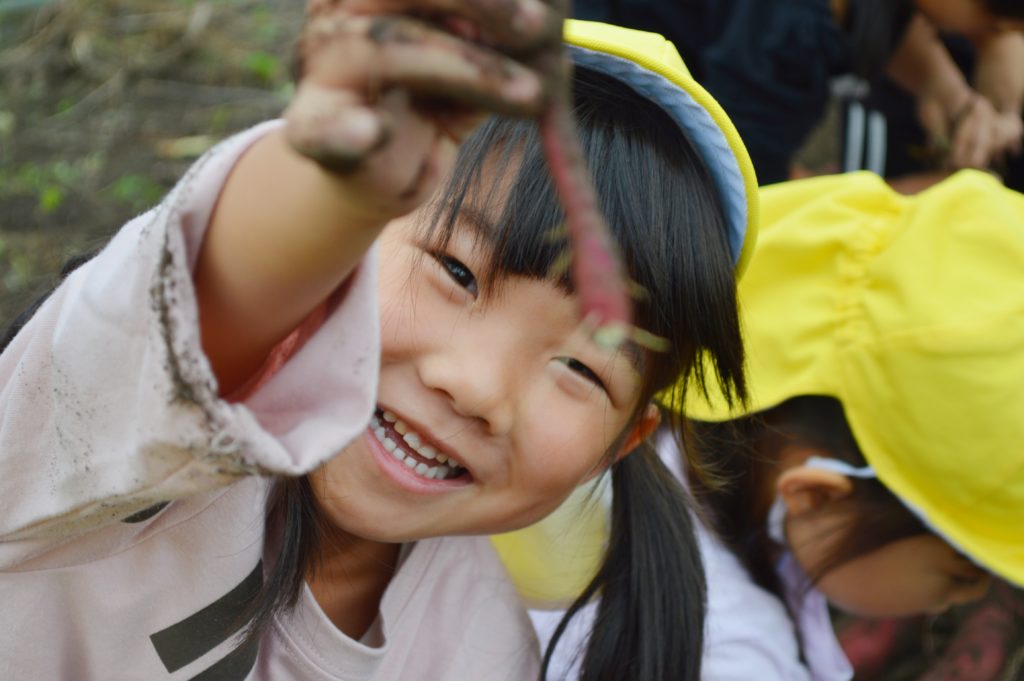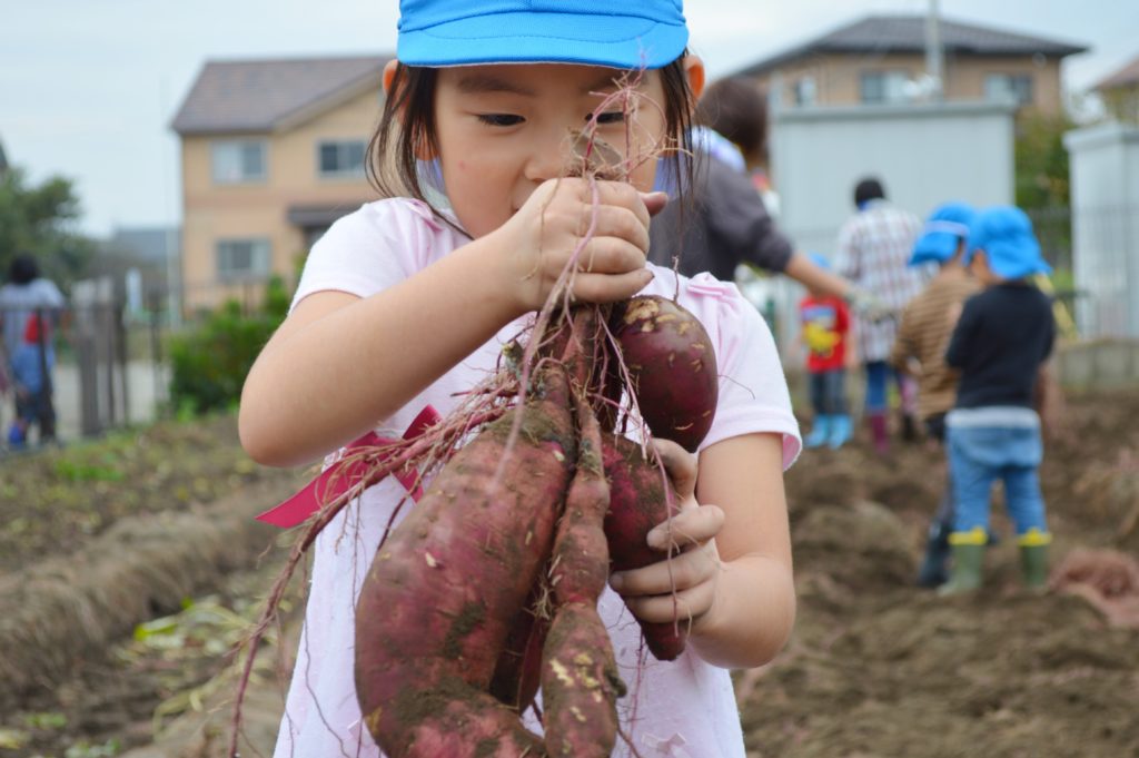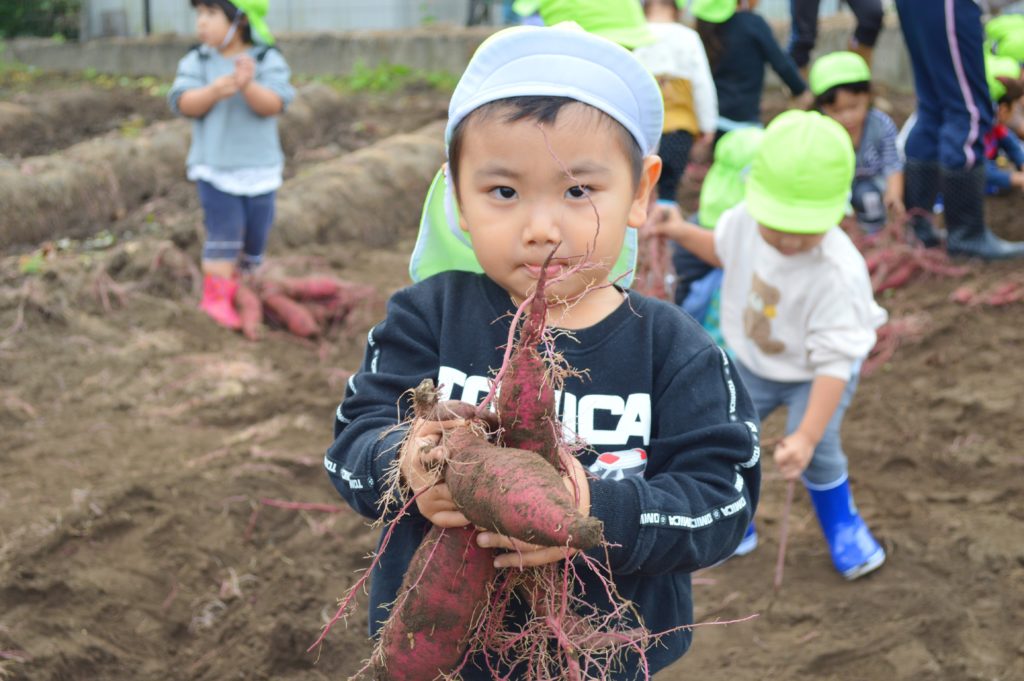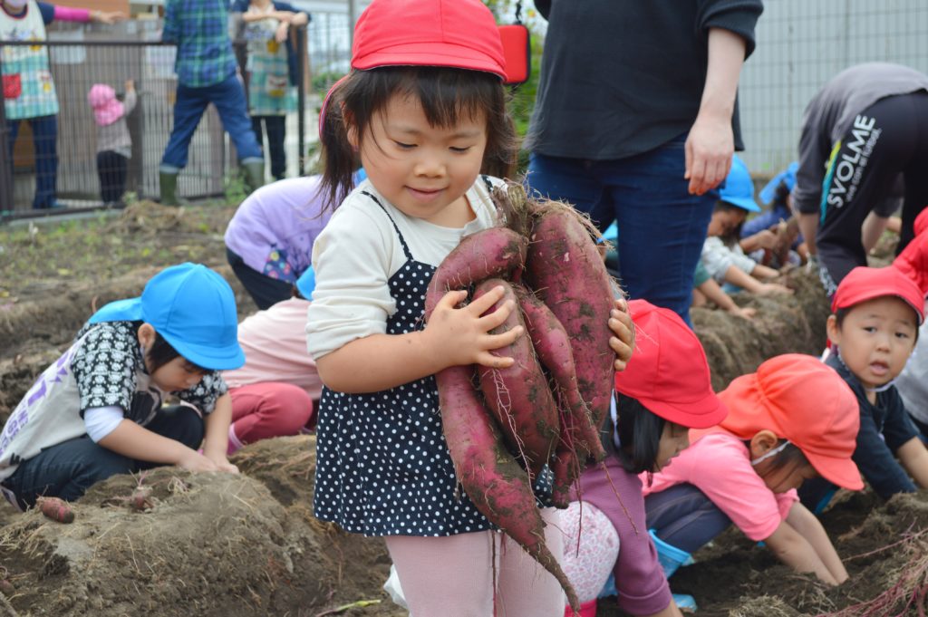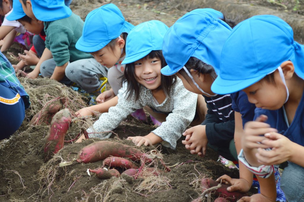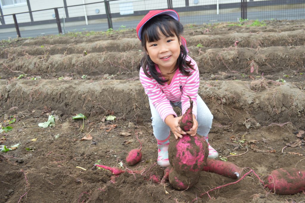 今日は以前に子供たちが植えたサツマイモの収穫を行いました。
