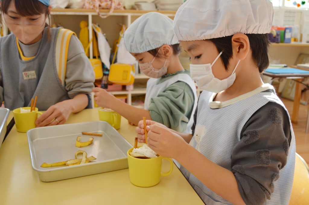 本日はひまわり組のみんなでバナナパフェを作りました♪