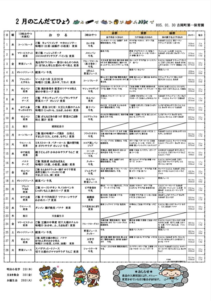 2月 献立表