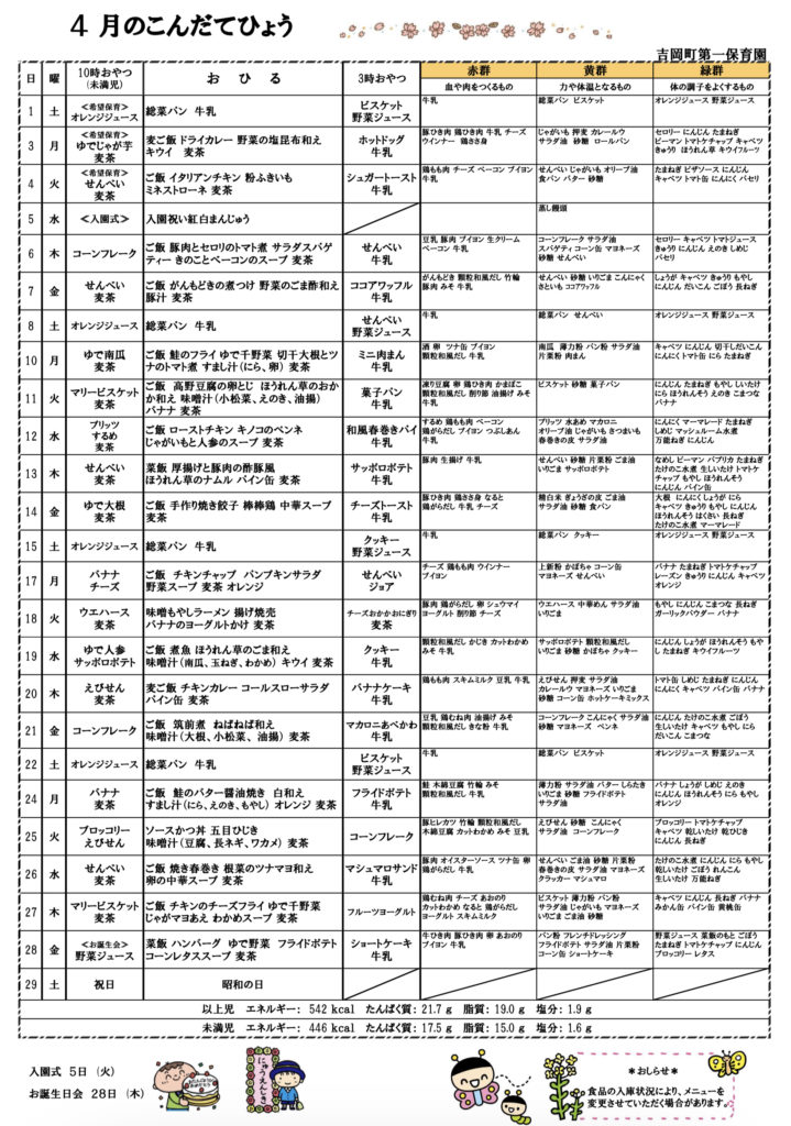 4月 献立表