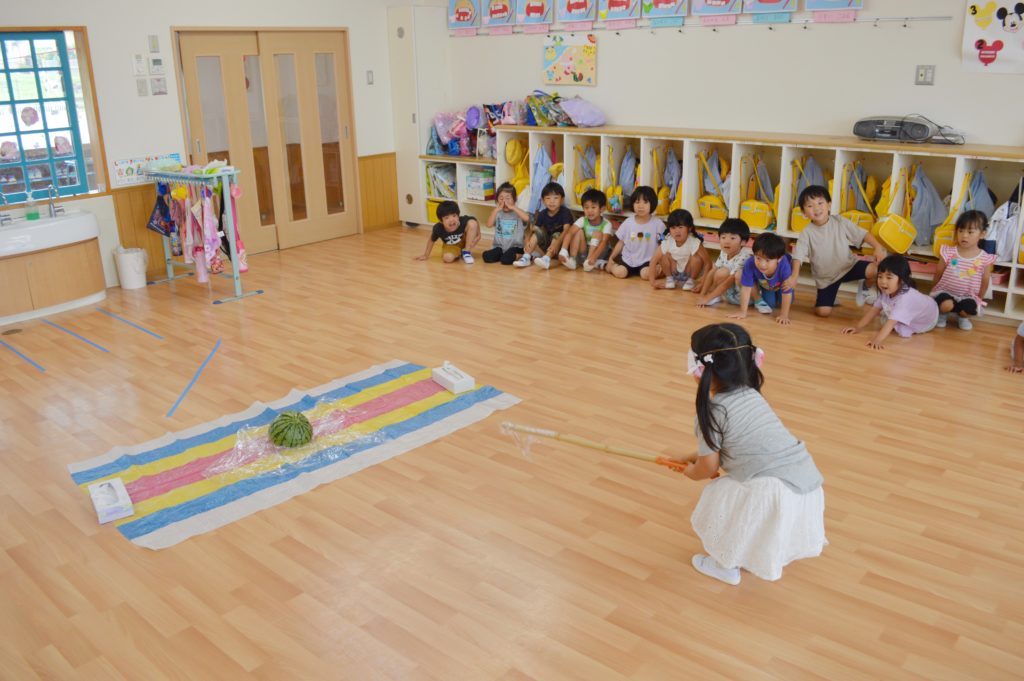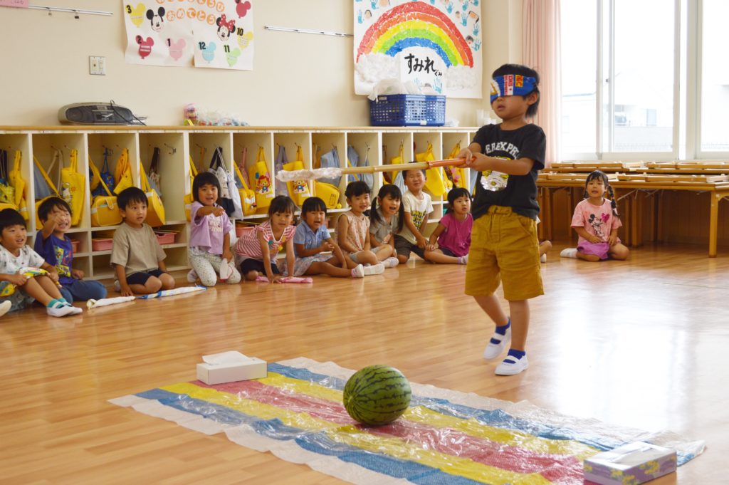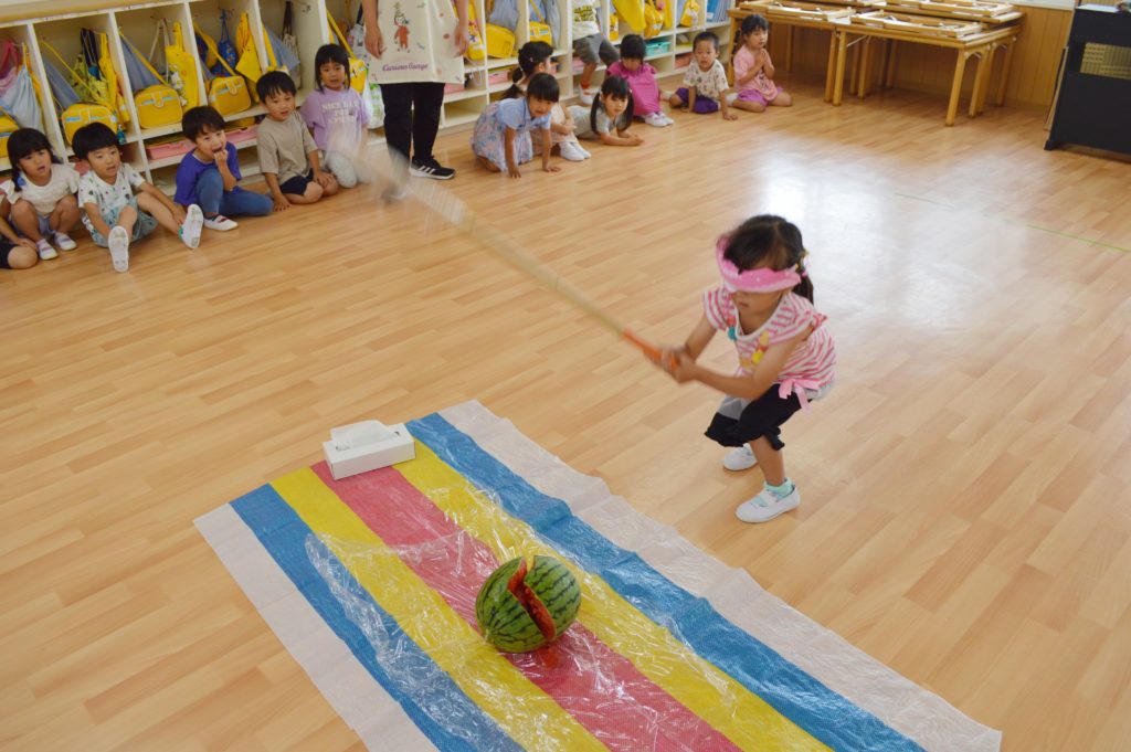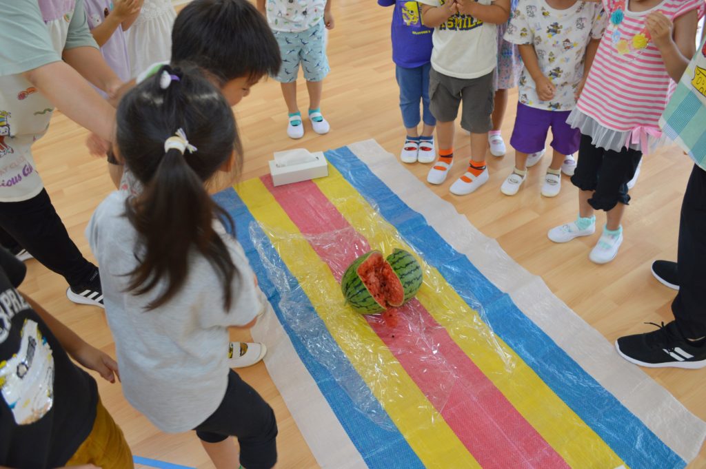 バラ組とスミレ組でスイカ割りを行いました🎵