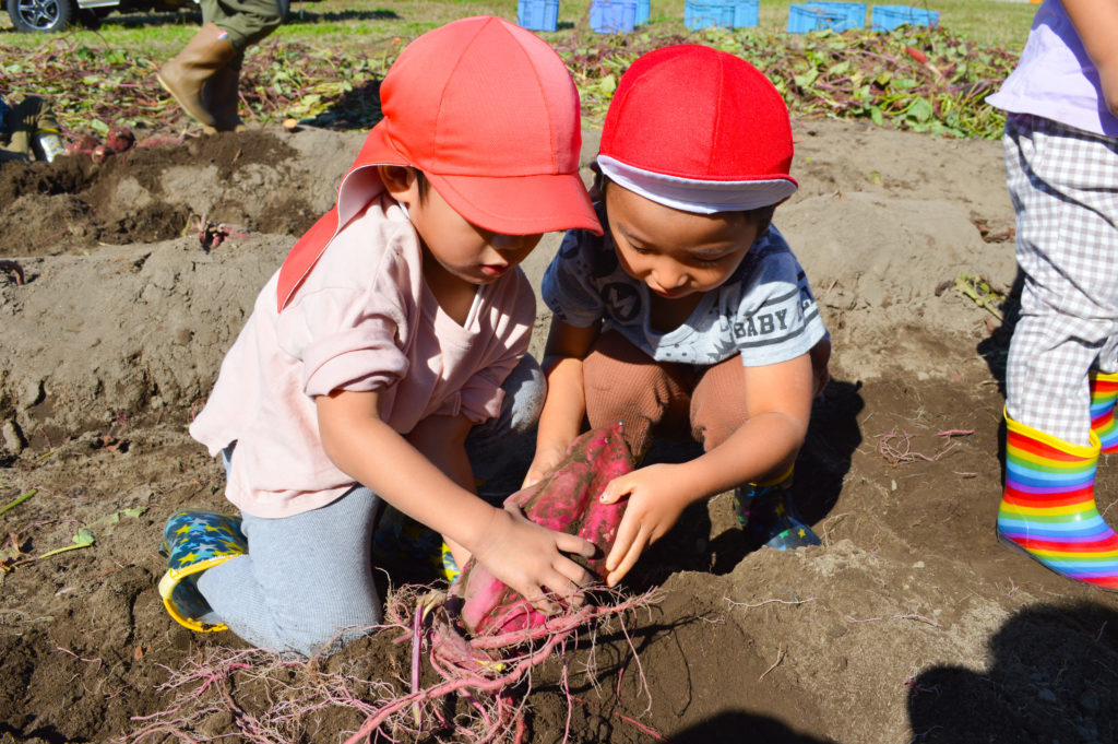 大きなサツマイモがたくさん出来ていたので、みんなで頑張って土を掘って