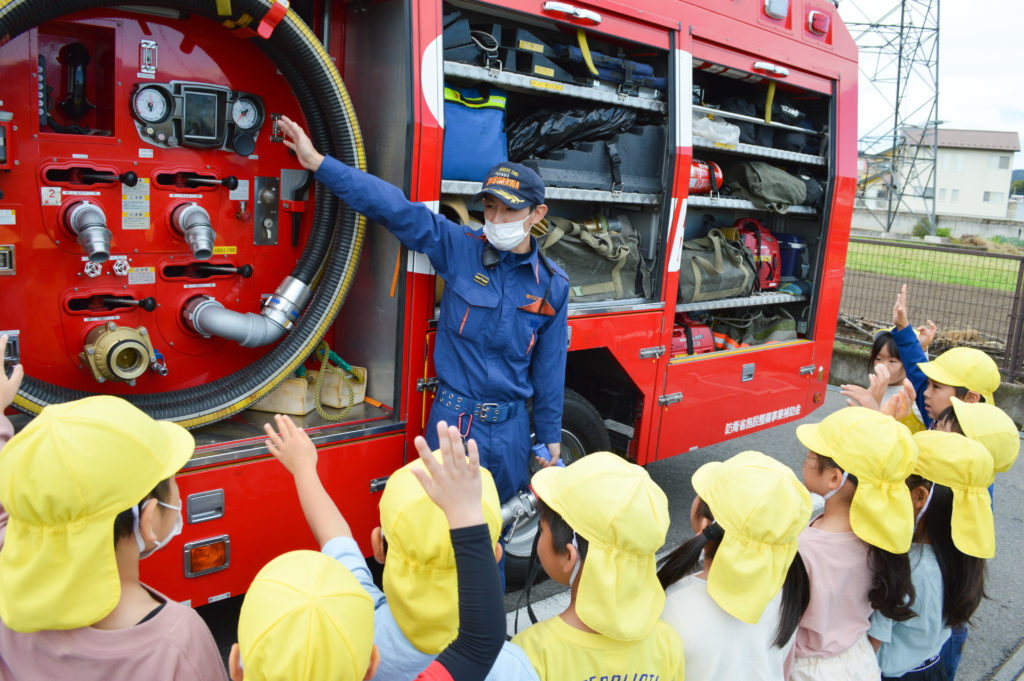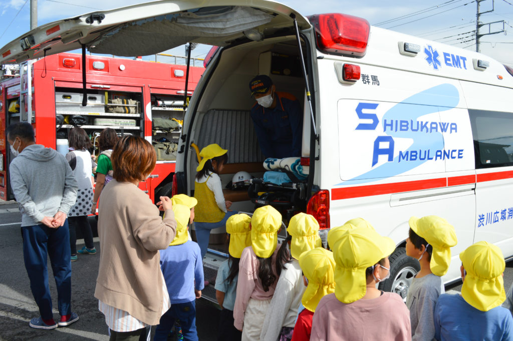 みんな消防車や救急車には興味津々で、消防士さんのお話をしっかり聞いていました♪