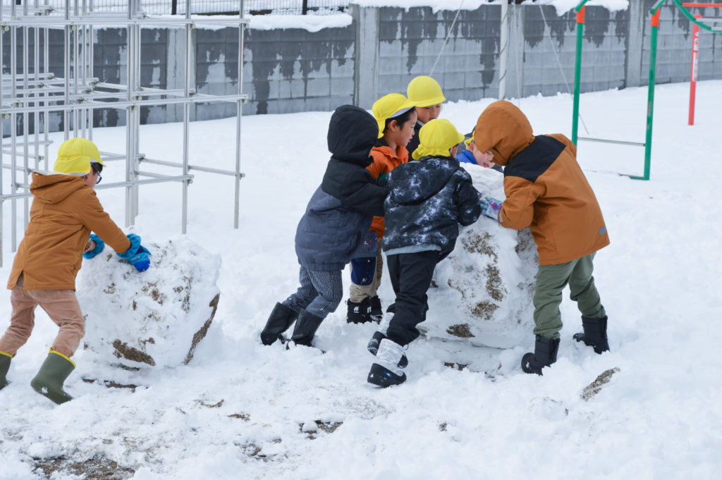 大きな雪玉を転がして、雪だるまやかまくらを作ったり