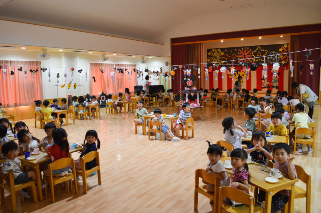お給食にはお祭りにちなんだメニューで、焼きそばやから揚げを作ってもらい